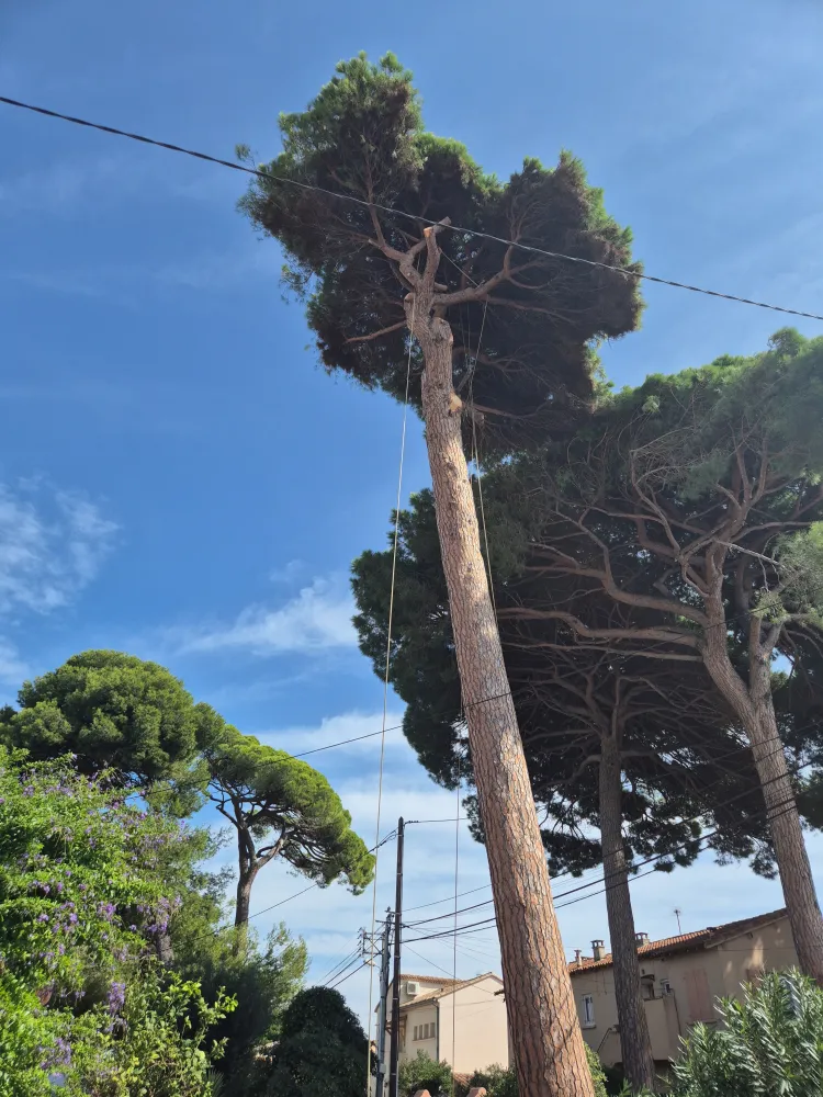 L'entreprise Fito élagage vous présente la coupe d'un pin parasol devenu dangereux pour une habitation à Hyères