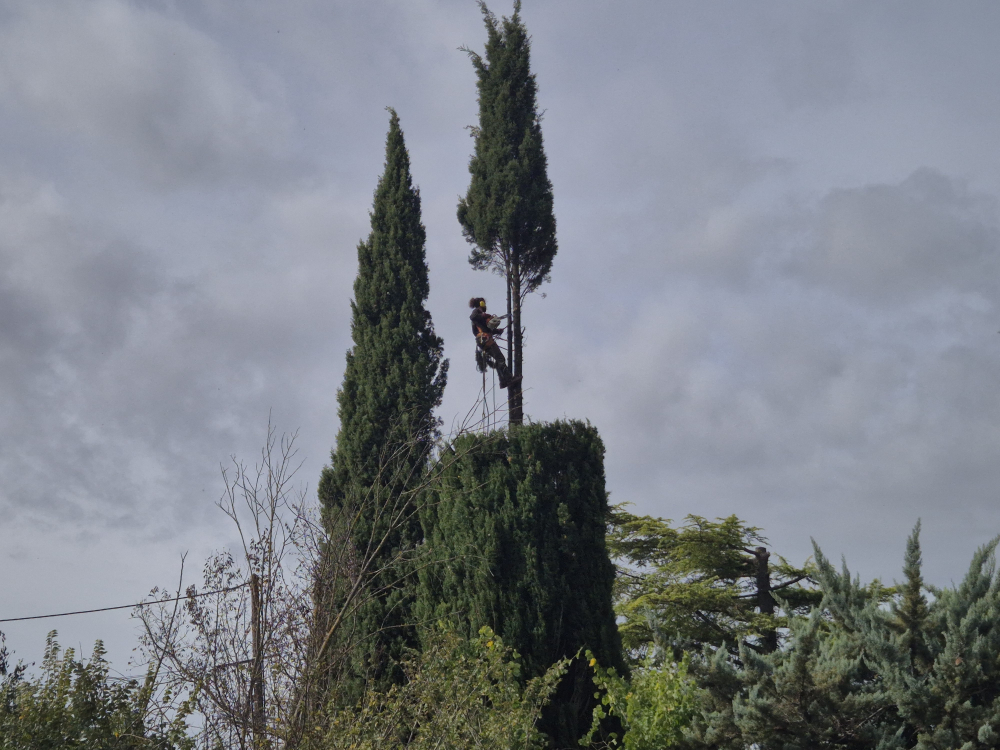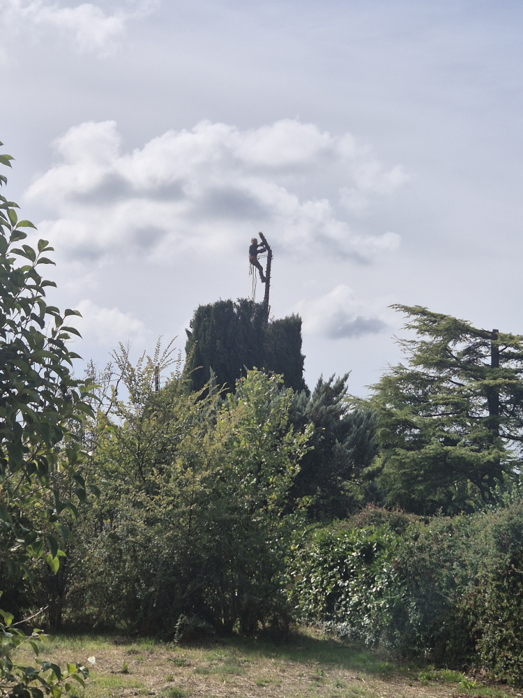 Fito Élagage à Lorgues vous présente sa dernière réalisation, vôtre élagueur spécialisé dans la coupe d'arbres dangereux à risque vous présente la taille de cyprès devenu trop dangereux par rapport à l'habitation à cause de leurs hauteur pouvant causer un accident